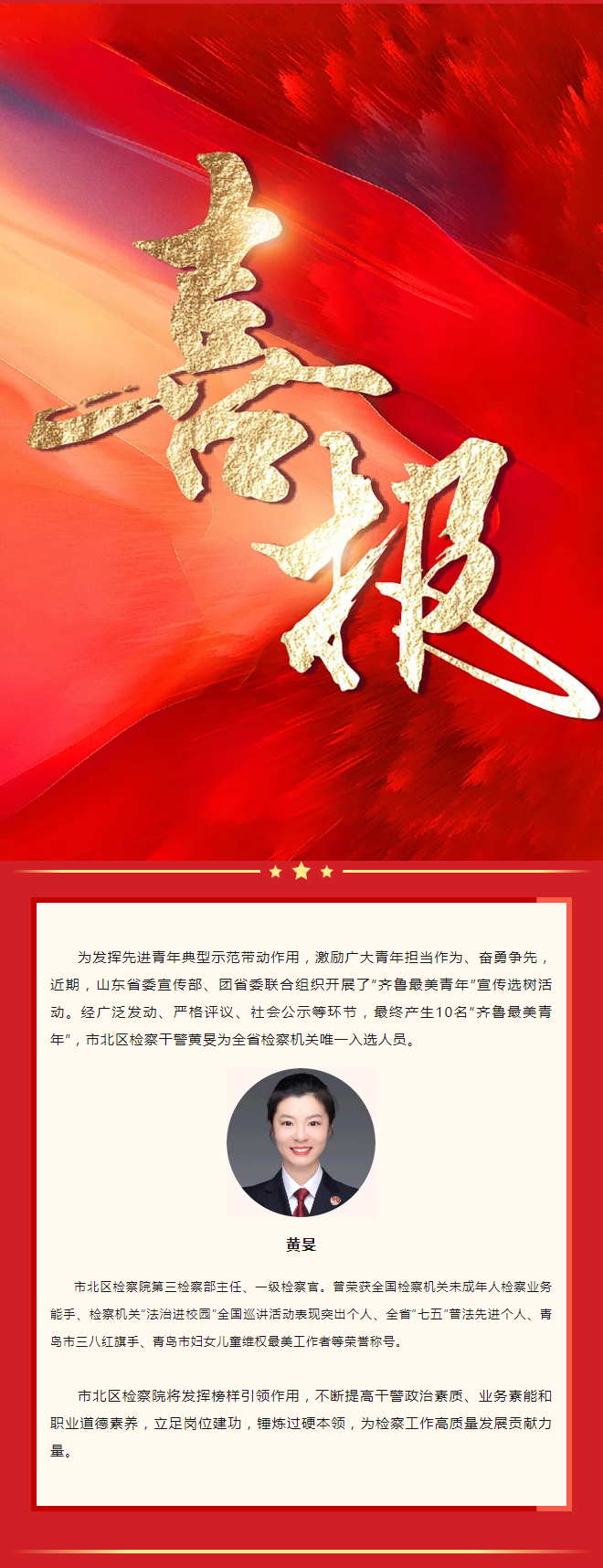 喜报!市北区检察院干警获评“齐鲁最美青年”