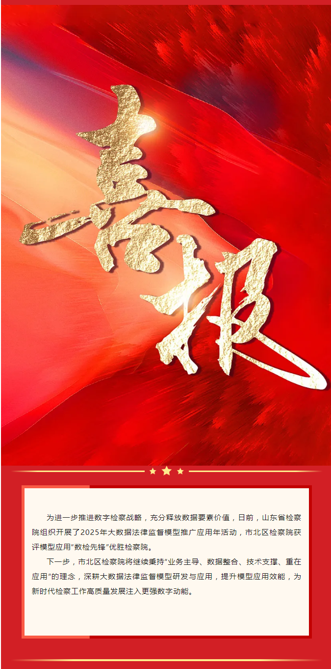 【喜报】市北区检察院获评全省大数据法律监督模型应用“数检先锋”优胜检察院