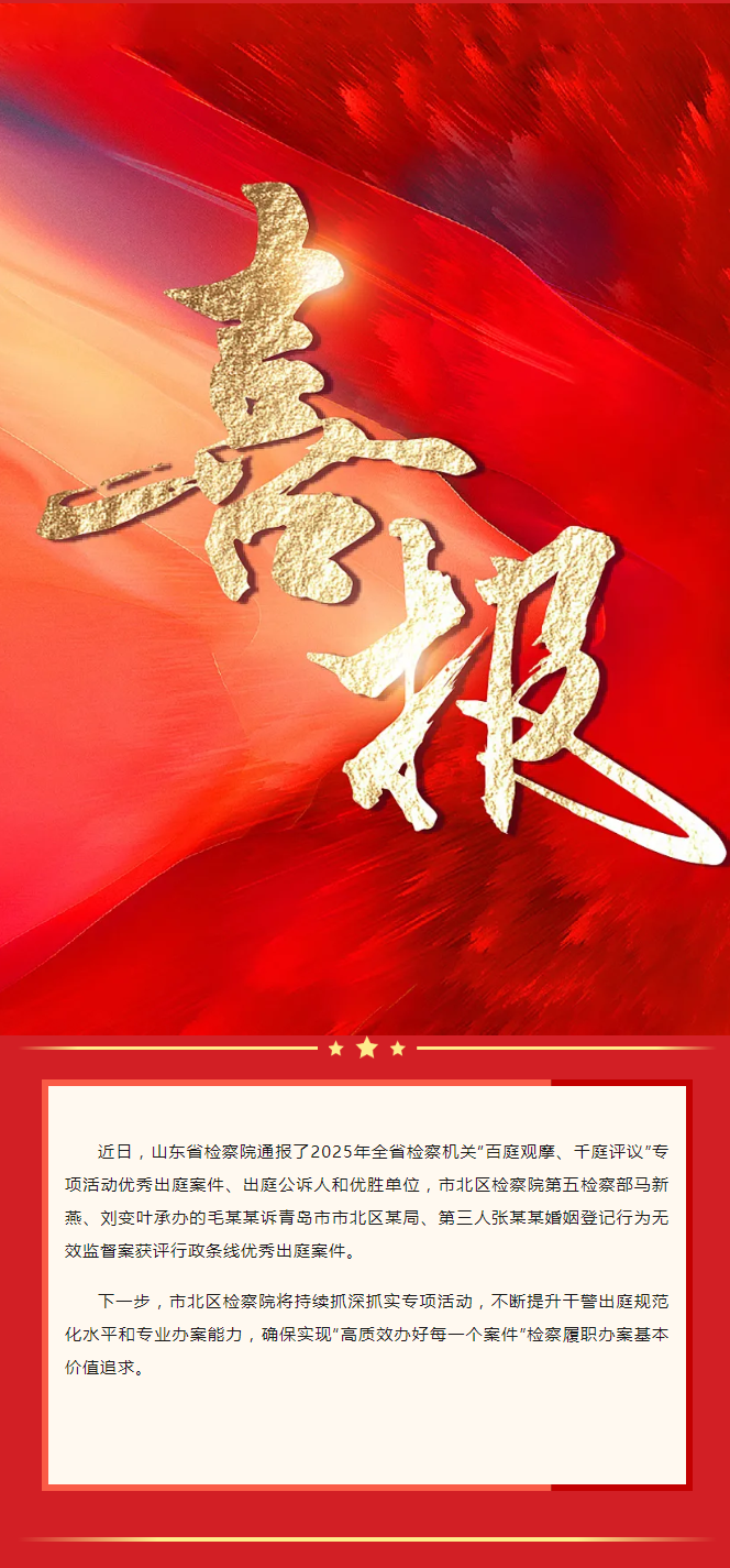 【喜报】市北区检察院办理的一起行政检察案件获评省院“百庭观摩、千庭评议”专项活动优秀出庭案件