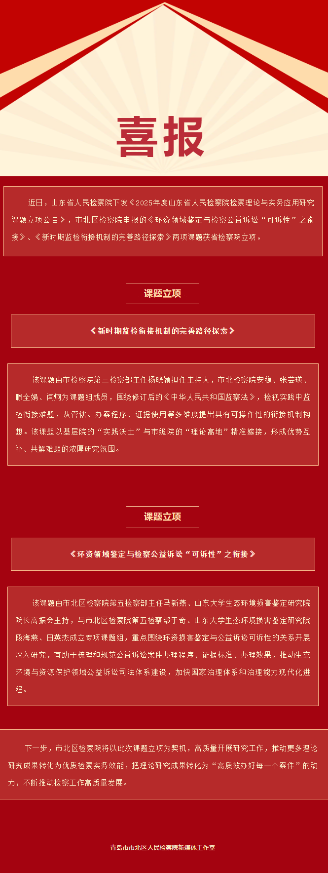 【喜报】市北区检察院两项理论研究课题获省检察院立项